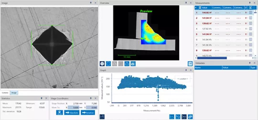 DiaMet 不僅能很大的提高焊接測試的效率與準確性,還可以進一步展示焊接區域的硬度分布,幫助使用者進行數據分析。