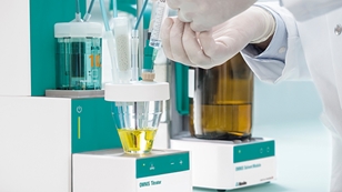 OMNIS 奧秘一代使卡爾費(fèi)休水分測定。接觸有毒試劑和溶劑被淘汰: ●? 3S液體適配器技術(shù)實(shí)現(xiàn)免接觸更換試劑 ●? 所有試劑都在一個(gè)密閉的系統(tǒng)中 ●? 使用過的試劑被自動(dòng)排出 ●? 自動(dòng)添加、排空滴定池   免接觸更換試劑 使用OMNIS 奧秘一代更換試劑瓶。你無需再打開裝有危險(xiǎn)液體的瓶子。只需輕輕一按安裝在試劑瓶上的液體適配器。這個(gè)密閉的系統(tǒng)在試劑和你的OMNIS 奧秘一代之間建立了一個(gè)連接,防止接觸有毒液體的意外的發(fā)生。   LED燈指示系統(tǒng)狀態(tài) 自動(dòng)電位滴定儀主機(jī)、液體適配器、攪拌器、智能電極、機(jī)器人樣品處理器和泵模塊上都有LED燈,在設(shè)備出現(xiàn)問題時(shí)以直觀的顏色代碼提醒使用者:紅色表示“系統(tǒng)錯(cuò)誤”,橙色表示“等待連接”,綠色表示“系統(tǒng)正?!?。   試劑信息可追溯 當(dāng)液體適配器將試劑瓶和您的OMNIS 奧秘一代自動(dòng)電位滴定儀連接,OMNIS 奧秘一代通過RFID讀取器讀取瓶蓋上芯片中的試劑信息,檢查是否與您的方法要求的規(guī)格參數(shù)相符。這種全自動(dòng)校驗(yàn)可以防止錯(cuò)誤發(fā)生,使您的實(shí)驗(yàn)結(jié)果可追溯。